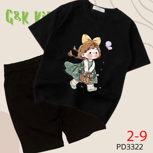 A506580 - Bộ áo phom rộng quần ngố bé gái chất thun coton 4c in cô bé_Size 2-9