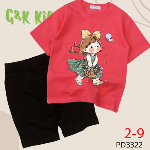 A506581 - Bộ áo phom rộng quần ngố bé gái chất thun coton 4c in cô bé_Size 2-9
