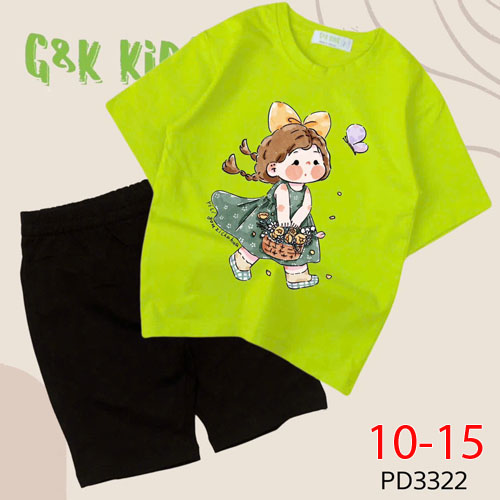 A506603 - Bộ áo phom rộng quần ngố bé gái chất thun coton 4c in cô bé_Size 10-15
