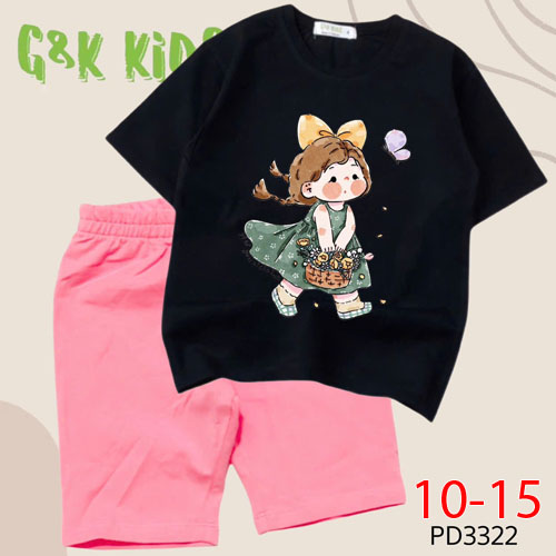 A506607 - Bộ áo phom rộng quần ngố bé gái chất thun coton 4c in cô bé_Size 10-15