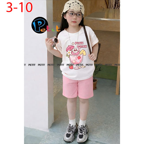 A506704 - Set bé gái áo form rộng thoải mái phối quần ngố năng động thun cotton in tổng hợp_Size 3-1