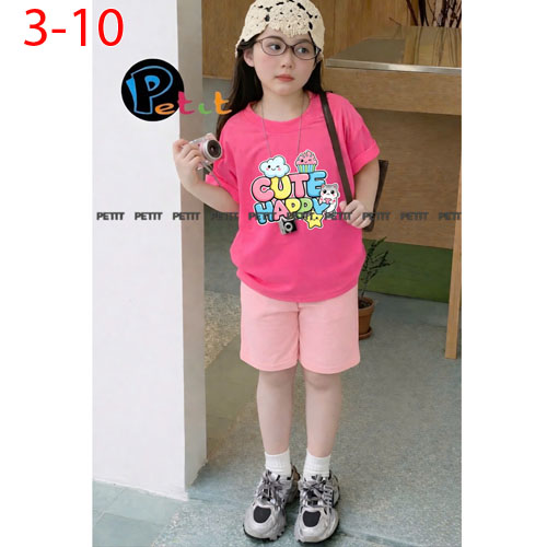 A506717 - Set bé gái áo form rộng thoải mái phối quần ngố năng động thun cotton in tổng hợp_Size 3-1