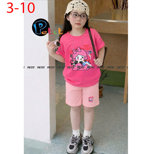 A506720 - Set bé gái áo form rộng thoải mái phối quần ngố năng động thun cotton in tổng hợp_Size 3-1