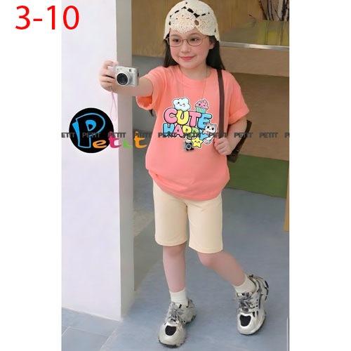A506722 - Set bé gái áo form rộng thoải mái phối quần ngố năng động thun cotton in tổng hợp_Size 3-1