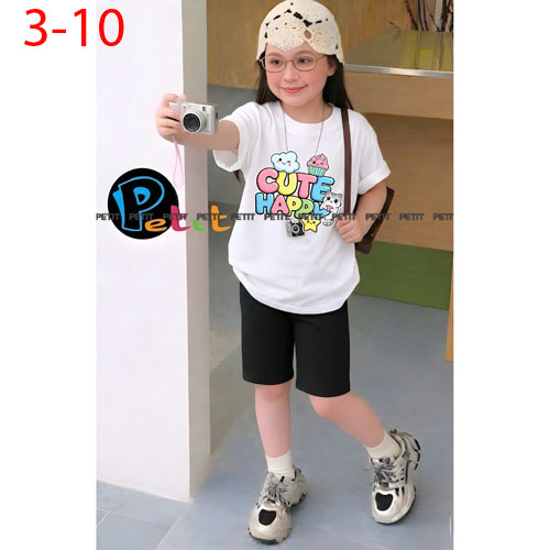 A506725 - Set bé gái áo form rộng thoải mái phối quần ngố năng động thun cotton in tổng hợp_Size 3-1