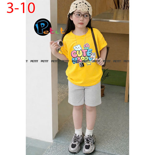 A506727 - Set bé gái áo form rộng thoải mái phối quần ngố năng động thun cotton in tổng hợp_Size 3-1
