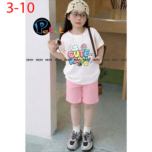 A506731 - Set bé gái áo form rộng thoải mái phối quần ngố năng động thun cotton in tổng hợp_Size 3-1