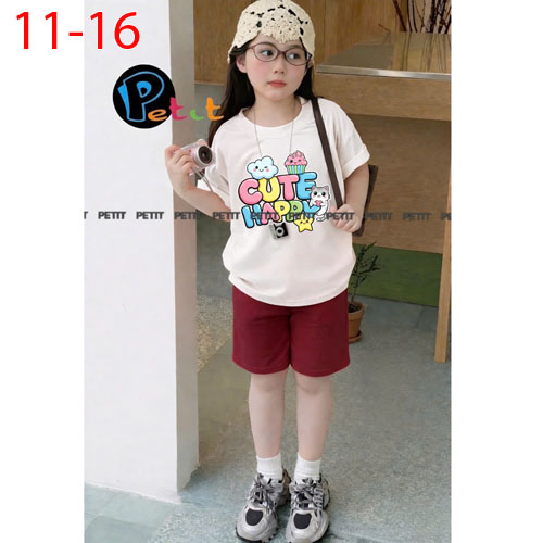 A506737 - Set bé gái áo form rộng thoải mái phối quần ngố năng động thun cotton in tổng hợp_Size 11-