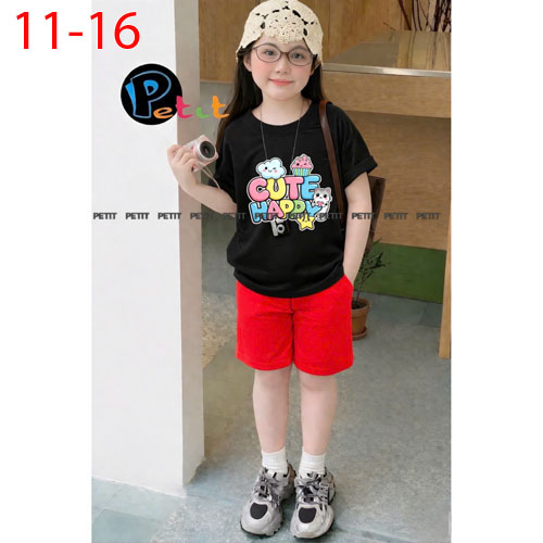 A506740 - Set bé gái áo form rộng thoải mái phối quần ngố năng động thun cotton in tổng hợp_Size 11-