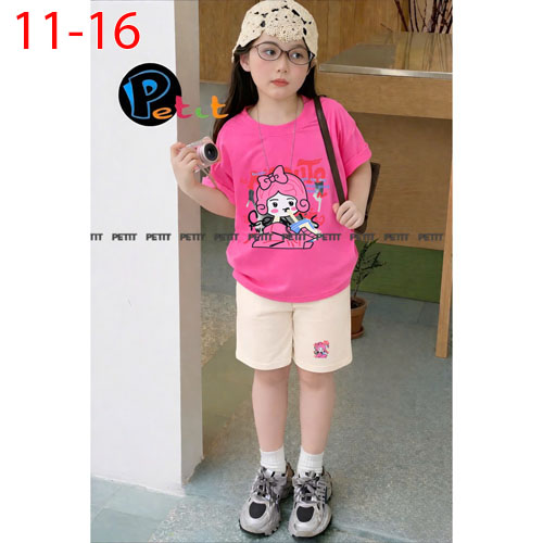A506748 - Set bé gái áo form rộng thoải mái phối quần ngố năng động thun cotton in tổng hợp_Size 11-