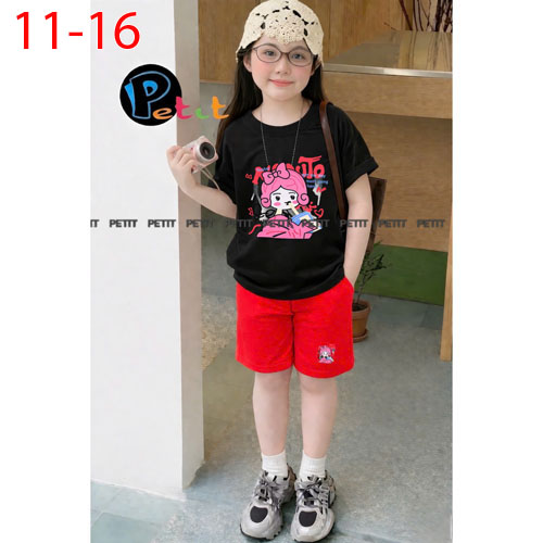 A506752 - Set bé gái áo form rộng thoải mái phối quần ngố năng động thun cotton in tổng hợp_Size 11-