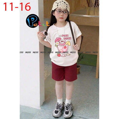 A506756 - Set bé gái áo form rộng thoải mái phối quần ngố năng động thun cotton in tổng hợp_Size 11-