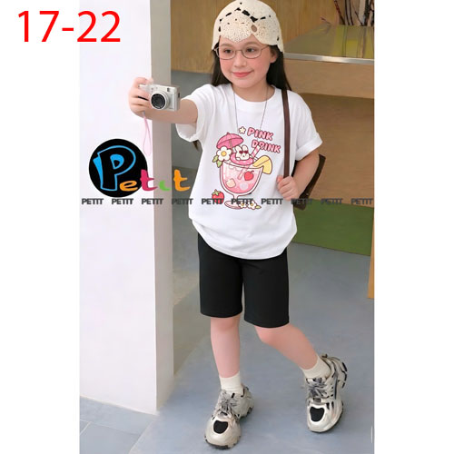 A506770 - Set bé gái áo form rộng thoải mái phối quần ngố năng động thun cotton in tổng hợp_Size 17-