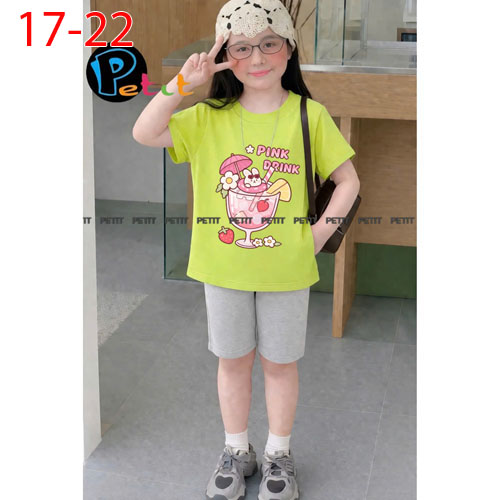 A506784 - Set bé gái áo form rộng thoải mái phối quần ngố năng động thun cotton in tổng hợp_Size 17-