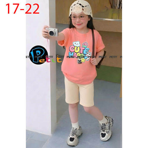 A506798 - Set bé gái áo form rộng thoải mái phối quần ngố năng động thun cotton in tổng hợp_Size 17-