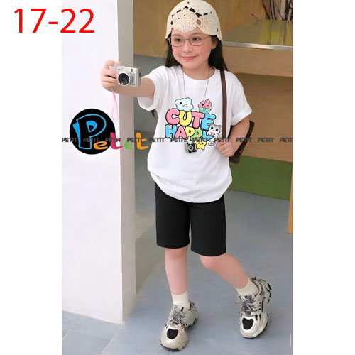 A506801 - Set bé gái áo form rộng thoải mái phối quần ngố năng động thun cotton in tổng hợp_Size 17-