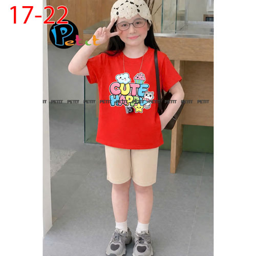 A506804 - Set bé gái áo form rộng thoải mái phối quần ngố năng động thun cotton in tổng hợp_Size 17-