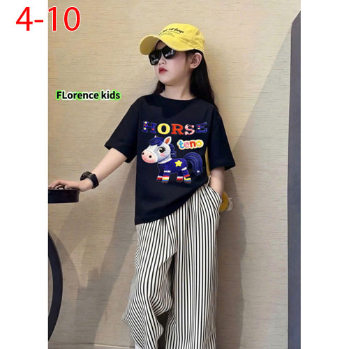 A507123 - Set quần dài caro áo thun cotton 4c in con ngựa xanh quần kate caro cotton_Size 4-10