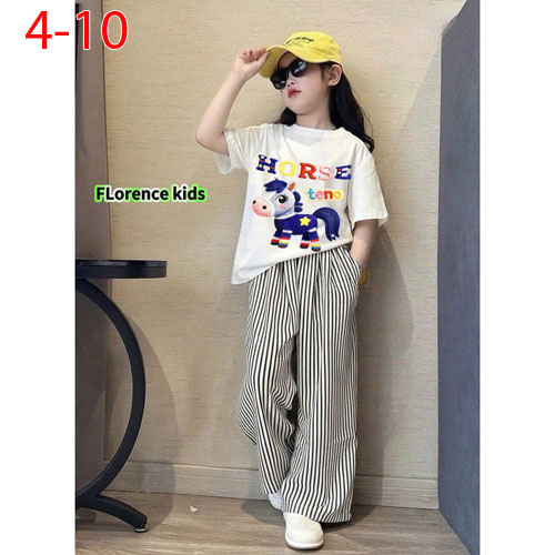 A507124 - Set quần dài caro áo thun cotton 4c in con ngựa xanh quần kate caro cotton_Size 4-10