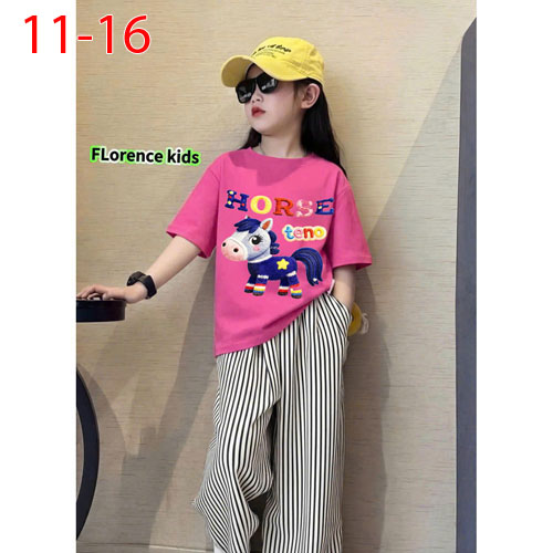 A507128 - Set quần dài caro áo thun cotton 4c in con ngựa xanh quần kate caro cotton_Size 11-16