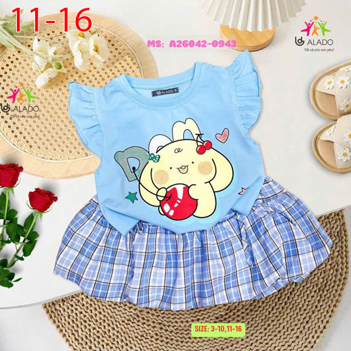 A239784 - Bộ YoYo BG thun cotton 4c Sweet Party áo lai bầu quần đùi_Size 2-9