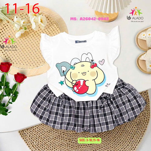 A239784 - Bộ YoYo BG thun cotton 4c Sweet Party áo lai bầu quần đùi_Size 2-9