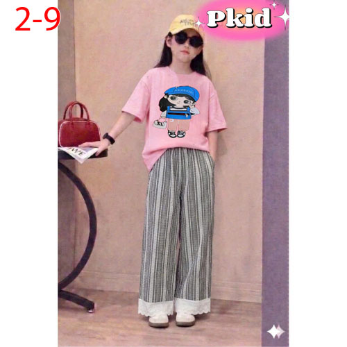 A507189 - Set bé gái áo chất thun cotton mềm mịn in cô bé quần chất katê cotton_Size 2-9