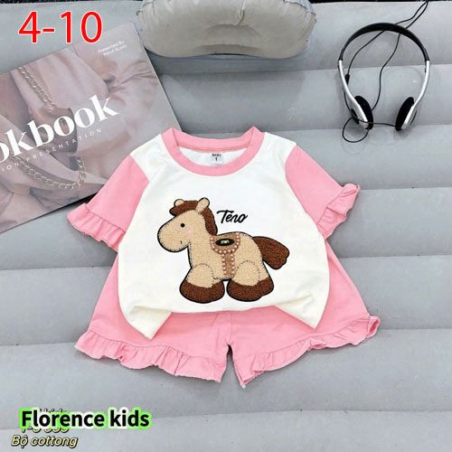 A507316 - Bộ đùi raplang dễ thương cho bé gái chất thun cotton 4c in con ngựa_Size 4-10