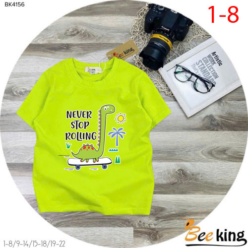 A507335 - Áo bé trai khủng long cao cổ xanh lá cotton 4 chiều_Size 1-8