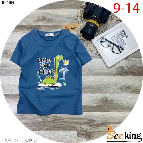 A507341 - Áo bé trai khủng long cao cổ xanh lá cotton 4 chiều_Size 9-14