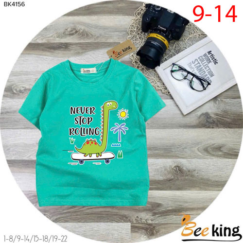 A507346 - Áo bé trai khủng long cao cổ xanh lá cotton 4 chiều_Size 9-14