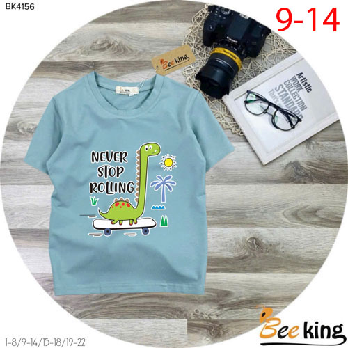 A507350 - Áo bé trai khủng long cao cổ xanh lá cotton 4 chiều_Size 9-14