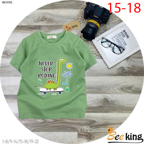 A507354 - Áo bé trai khủng long cao cổ xanh lá cotton 4 chiều_Size 15-18