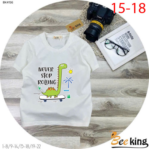 A507356 - Áo bé trai khủng long cao cổ xanh lá cotton 4 chiều_Size 15-18