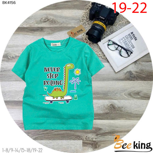 A507376 - Áo bé trai khủng long cao cổ xanh lá cotton 4 chiều_Size 19-22