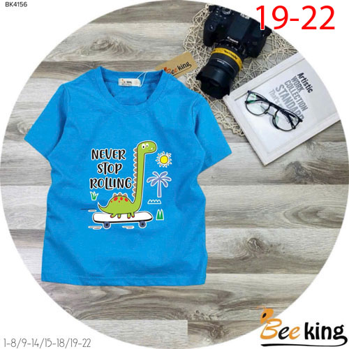 A507382 - Áo bé trai khủng long cao cổ xanh lá cotton 4 chiều_Size 19-22