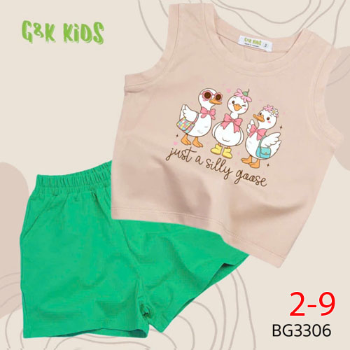 A507384 - Bộ quần đùi áo sát nách bé gái thun coton 4c in 3 con vịt_Size 2-9