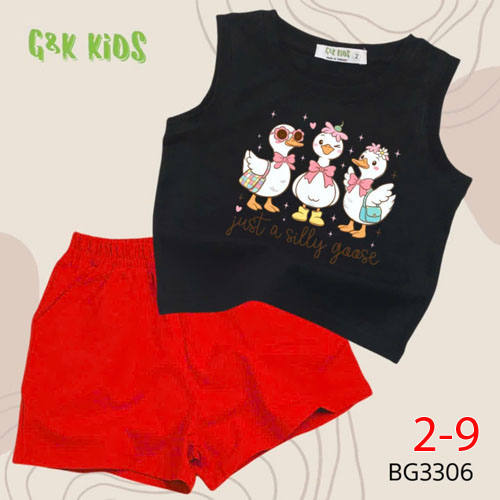 A507387 - Bộ quần đùi áo sát nách bé gái thun coton 4c in 3 con vịt_Size 2-9