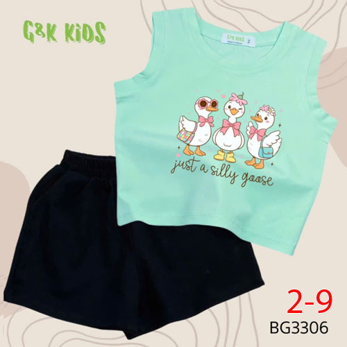 A507389 - Bộ quần đùi áo sát nách bé gái thun coton 4c in 3 con vịt_Size 2-9