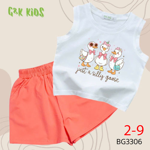 A507391 - Bộ quần đùi áo sát nách bé gái thun coton 4c in 3 con vịt_Size 2-9