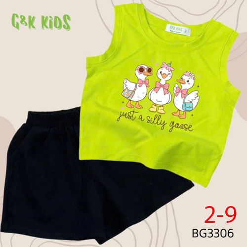 A507393 - Bộ quần đùi áo sát nách bé gái thun coton 4c in 3 con vịt_Size 2-9