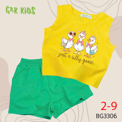 A507398 - Bộ quần đùi áo sát nách bé gái thun coton 4c in 3 con vịt_Size 2-9