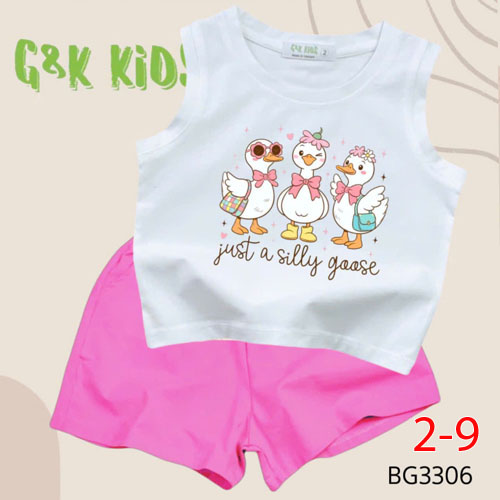 A507404 - Bộ quần đùi áo sát nách bé gái thun coton 4c in 3 con vịt_Size 2-9