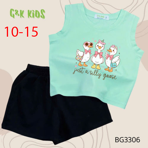 A507422 - Bộ quần đùi áo sát nách bé gái thun coton 4c in 3 con vịt_Size 10-15