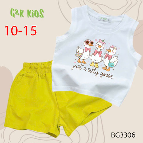 A507426 - Bộ quần đùi áo sát nách bé gái thun coton 4c in 3 con vịt_Size 10-15