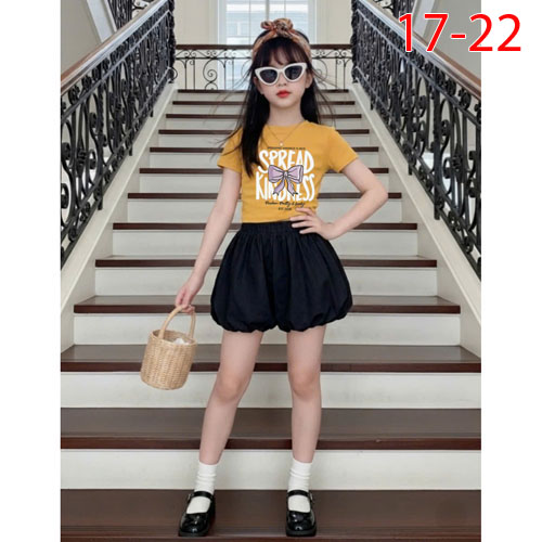 A507461 - (25/4)Set quần bí phối áo croptop thun cotton mềm mịn in chữ_Size 17-22