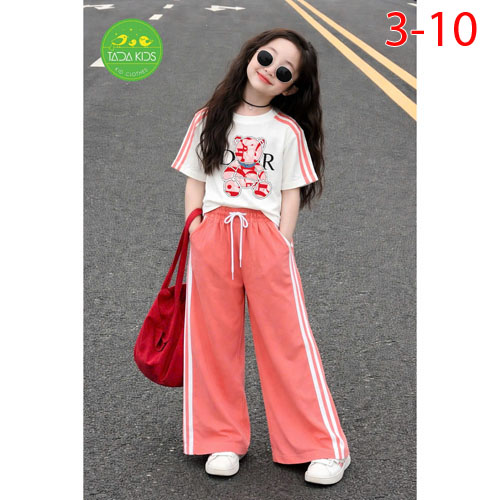 A507667 - Bộ cotton bé gái siêu kute áo phom lửng mix quần dáng suông thụng như mẫu áo và quần chạy
