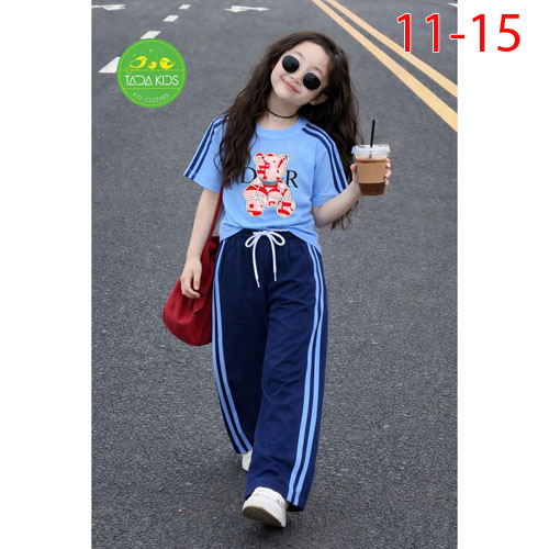 A507675 - Bộ cotton bé gái siêu kute áo phom lửng mix quần dáng suông thụng như mẫu áo và quần chạy