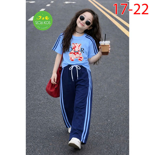 A507682 - Bộ cotton bé gái siêu kute áo phom lửng mix quần dáng suông thụng như mẫu áo và quần chạy