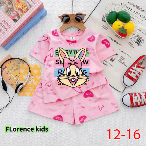 A507703 - Bộ đùi loang lai bèo dễ thương cho bé gái thun cotton 4c in thỏ_Size 12-16